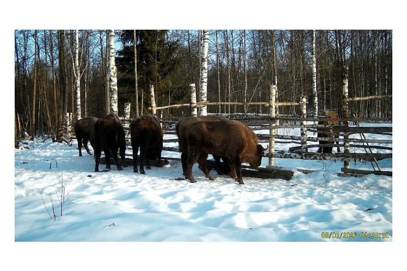 Несмотря на раннюю весну и тёплую погоду, в марте зубры регулярно посещали подкормочные площадки, где им выкладывались зерновые корма, сено и морковь.