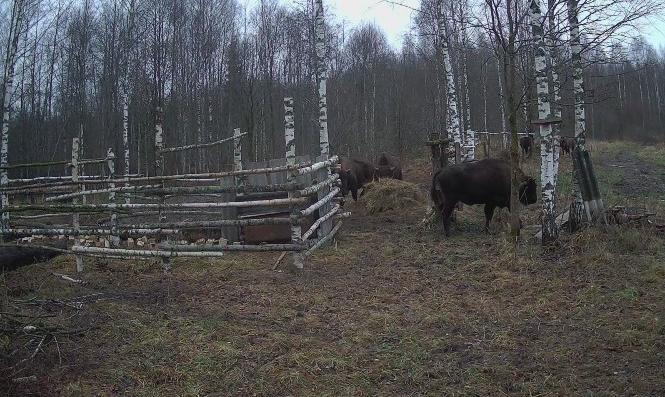Зубры, прибывшие в октябре из Приокско-Террасного заповедника, завершили карантин и вышли на волю. Сейчас они исследуют лес и с удовольствием пробуют природные корма — хвощ, жёлуди, кору и молодые побеги. Хотя животные выросли в неволе и не знали многих естественных кормов, природные инстинкты быстро подсказывают им, что безопасно для питания.